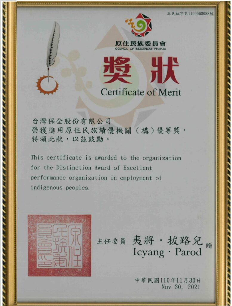 打造友善的職場環境,重視同仁的需求與聲音是台灣保全相當重視的要務,實現男女擁有同工同酬的獎酬條件及平等晉升機會,並漸進拉進男女主管職位人數均等比例。而台灣保全因職務上的服務性質特殊性,多數應聘同仁為男性,但台灣保全在職場上嚴格遵循各項規範,無性別、年齡、星座、宗教、血型、膚色、種族等歧視事件發生。2021 年還獲主管機關頒贈進用原住民族績優機關優等獎,也凸顯台灣保全在職場友善一面。